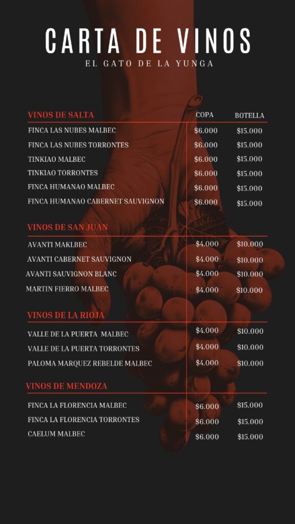Carta de Vinos